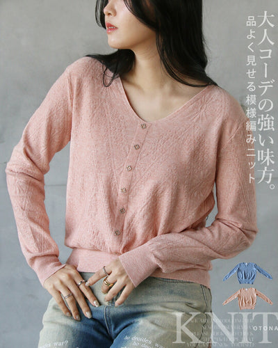 ■デイリーからオフィスシーンまでオンオフ問わず頼れる模様編み上品ニット。新しい季節を感じさせる大人にちょうど良い派手すぎない淡色で気分上がる大人のパステルカラーで着こなしをパッと華やかに。