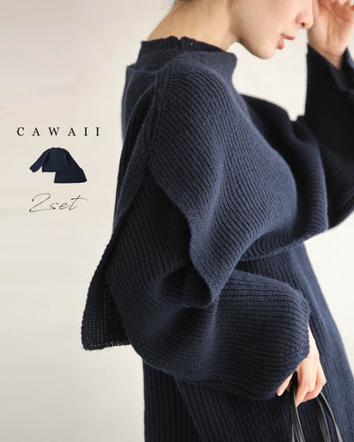 ゆったりニットトップスとニットケープの2点セット【set】