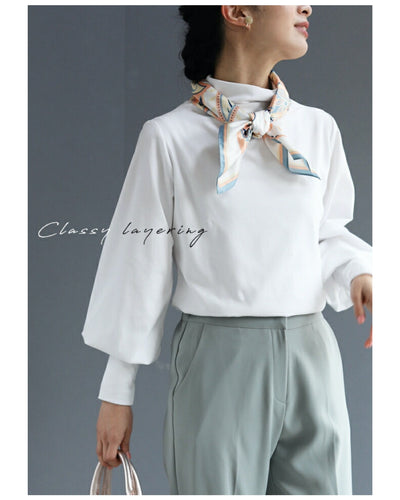 程よい立ち襟で首元すっきり細見せが叶います♪袖は絶妙な切り替えのセットインスリーブデザイン。広めのアームホールで締め付け感ゼロ。カフス部分を長くすることで華奢見せします。
