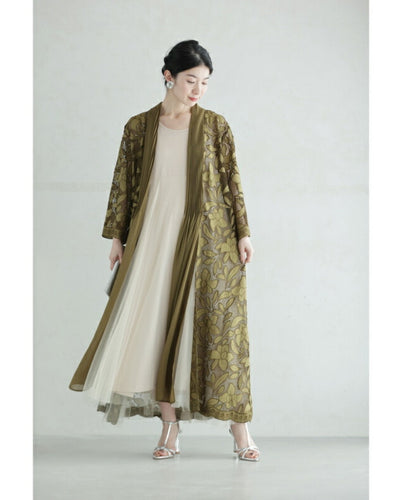 花浮かび咲くメッシュロングガウンカーディガン