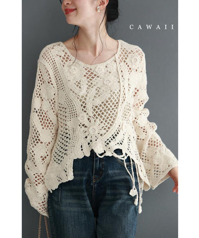 肌の透け感が可愛いクロシェ編みプルオーバートップス