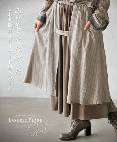 ありそうでなかった ふわり揺れるレイヤード風スカート『モカブラウン』