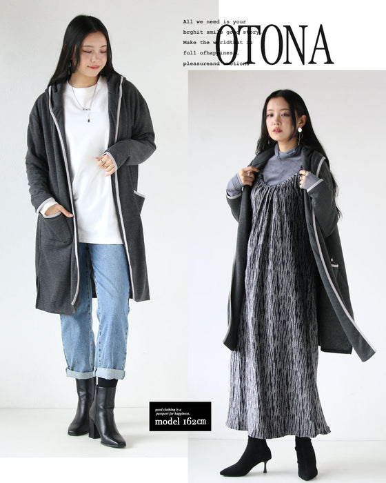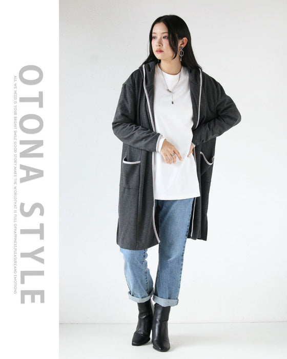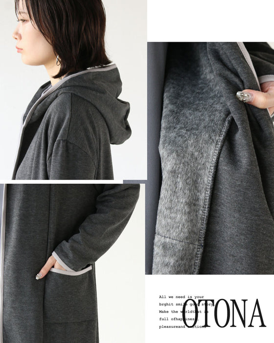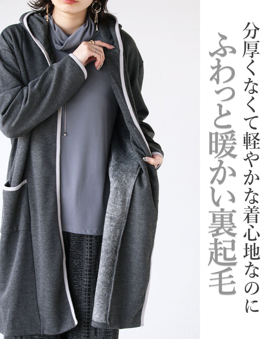 ■抜け感たっぷりのトッパーデザインと少しカジュアルダウンさせて見せるフードデザイン。季節の変わり目やデイリーにサッと羽織れるシンプルだけど奥行きのあるふわっと暖かい裏起毛デザインの大人のこなれアウター