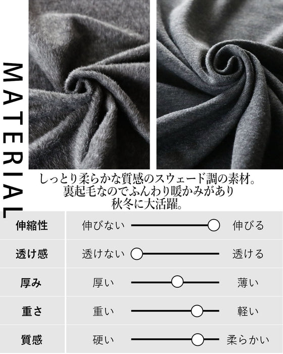 ■しっとり柔らかな質感のスウェード調の素材。裏起毛なのでふんわり暖かみがあり秋冬に大活躍。