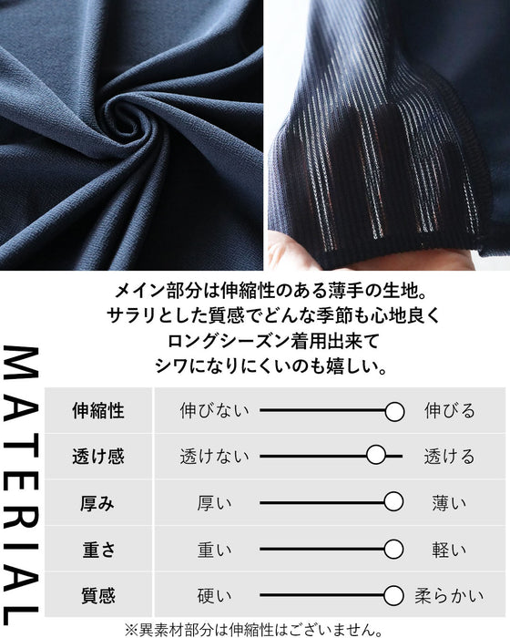 ■メイン部分は伸縮性のある薄手の生地。サラリとした質感でどんな季節も心地良くロングシーズン着用出来てシワになりにくいのも嬉しい。