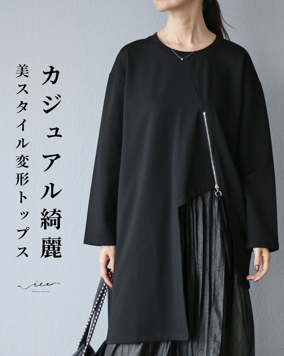 変形デザインがアクセントとなり、大人の女性の魅力を引き立てます。 楽に綺麗に着こなせる一枚です