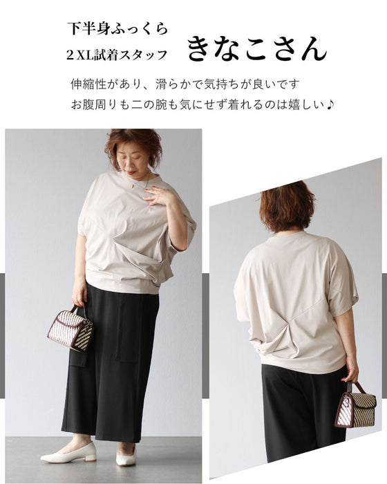 このトップスは、体型をカバーしつつ、ゆったりとした着心地を提供します。