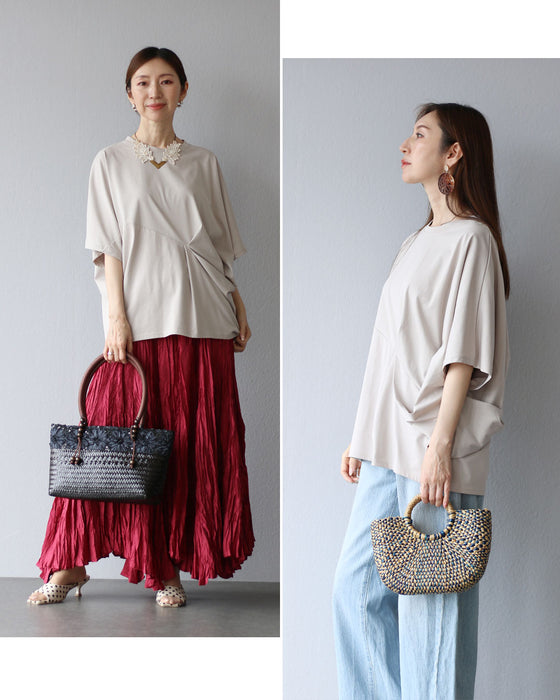 ニュアンスのあるタックデザインがポイントで、リラックス感を演出しながらも お洒落な印象を与えます。