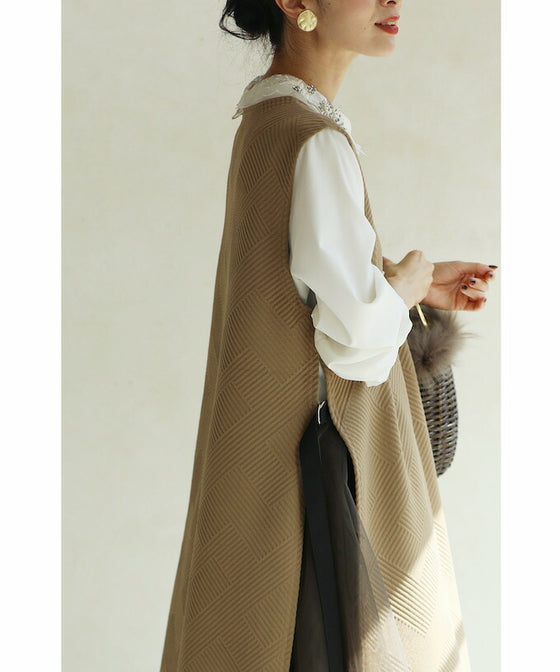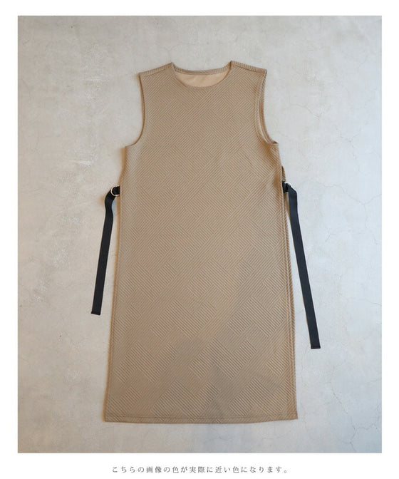 サイドのベルトで自分の好きな位置に調節できますし、深めに開いたスリットでスッキリ見えするから着やせ効果が叶います◎
