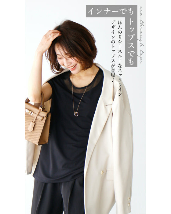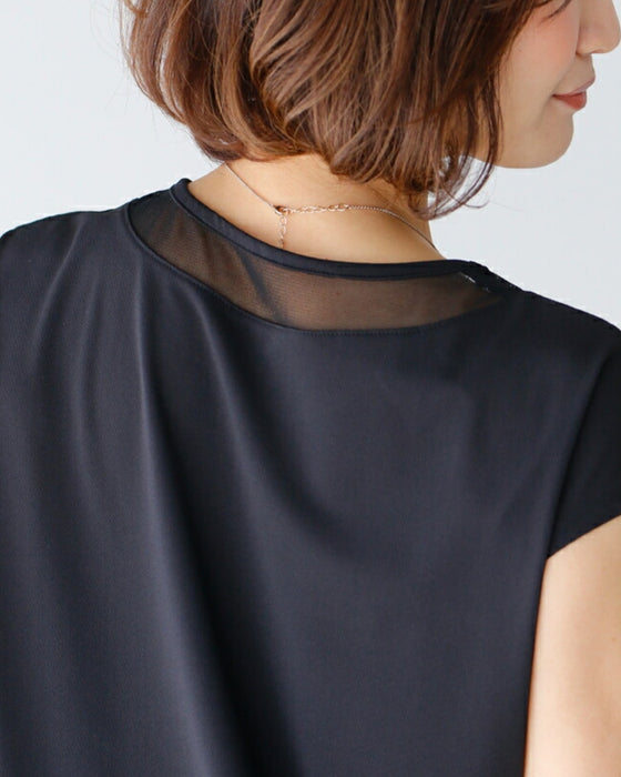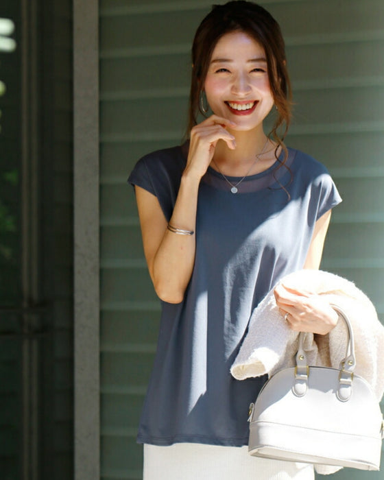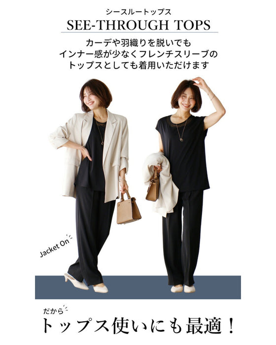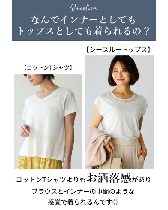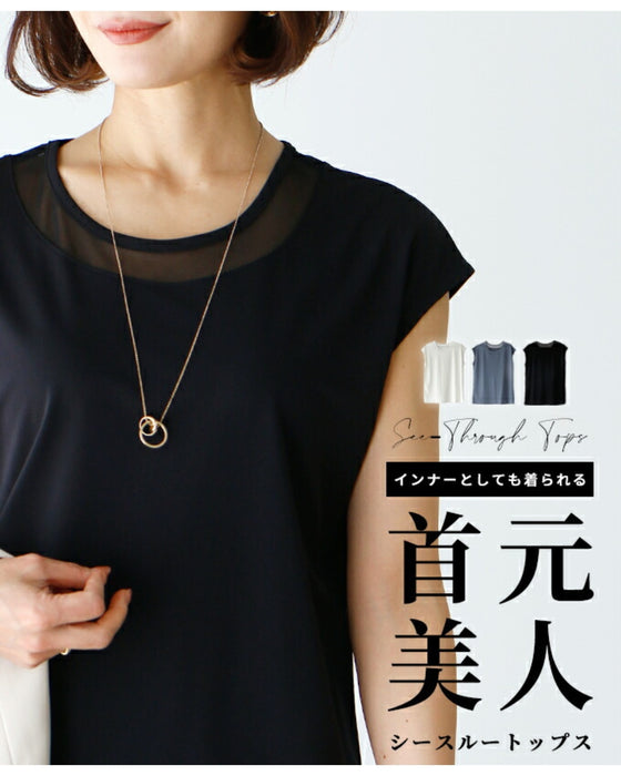 トップス インナー シースルー デザイントップス 涼しい 上品 ホワイト チャコールグレー ブラック 黒 白 灰 フレンチスリーブ レディース ファッション Ehre style スタイル エーレスタイル 小柄さんもOK Ehrestyle フリーサイズ 夏
