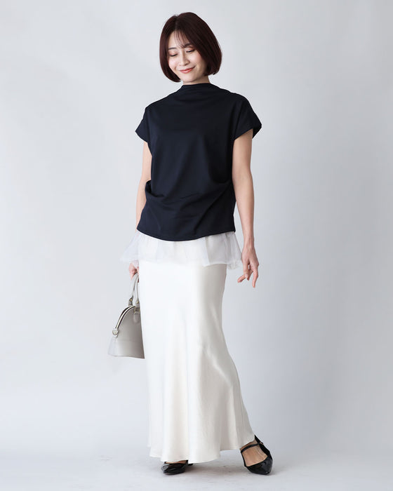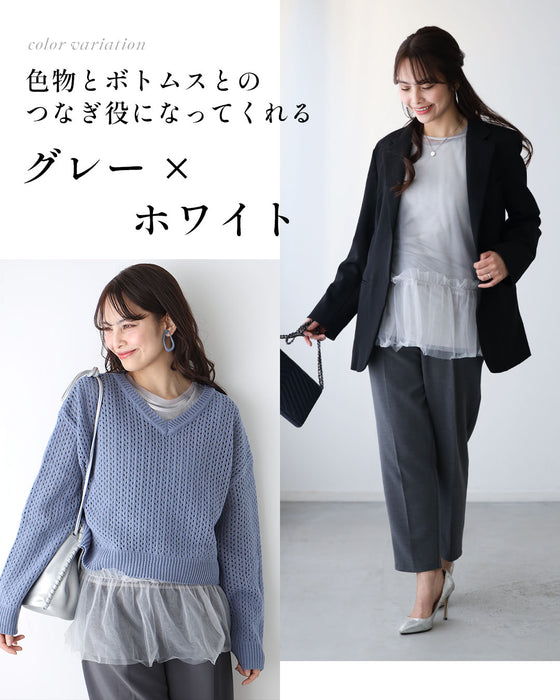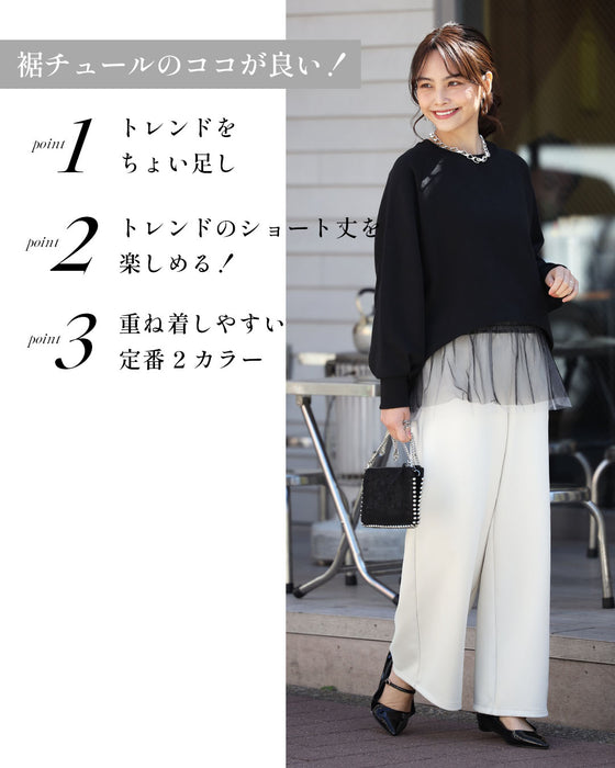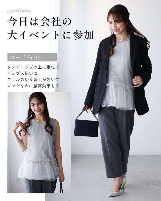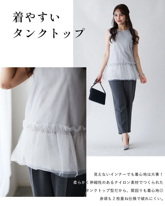 インナー チュール タンクトップ ノースリーブ 裾チュール トップス 重ね着 レイヤード ブラック ホワイト グレー 黒 白 灰 春 夏 秋 冬 オールシーズン フリーサイズ 体型カバー レディース ファッション Ehre style エーレスタイル 小柄さんもOK Ehrestyle