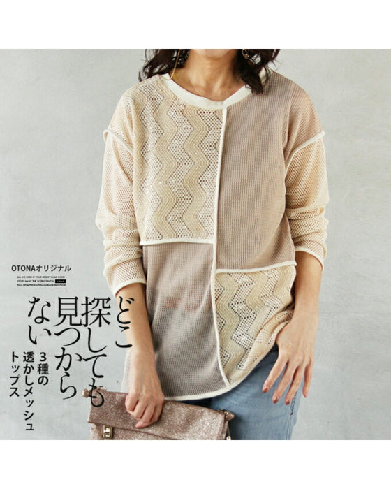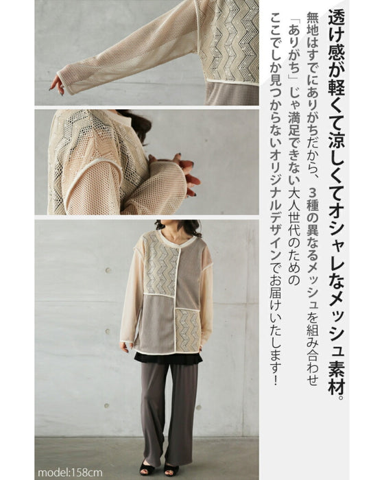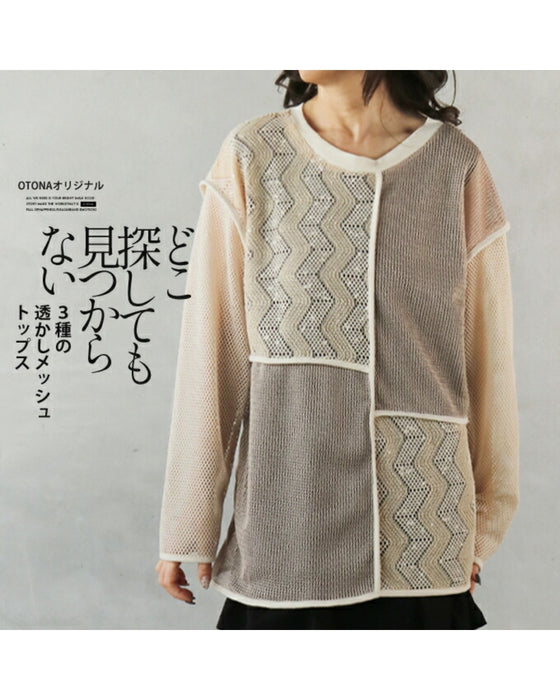 どこ探しても見つからない 3種の透かしメッシュトップス