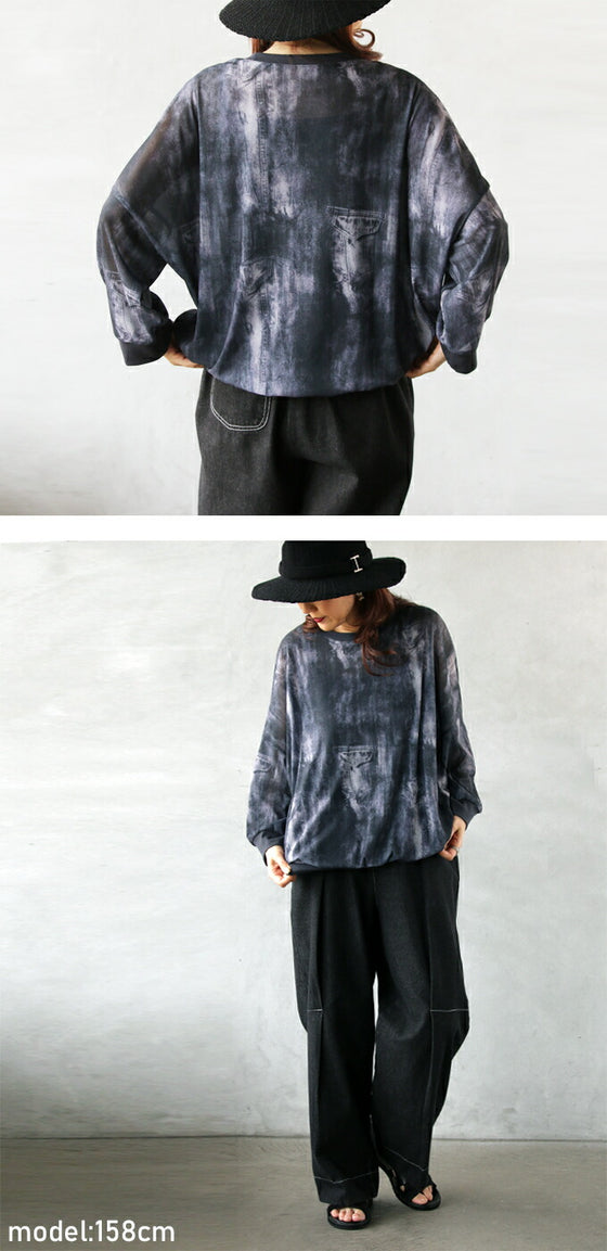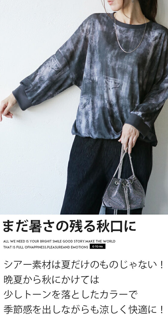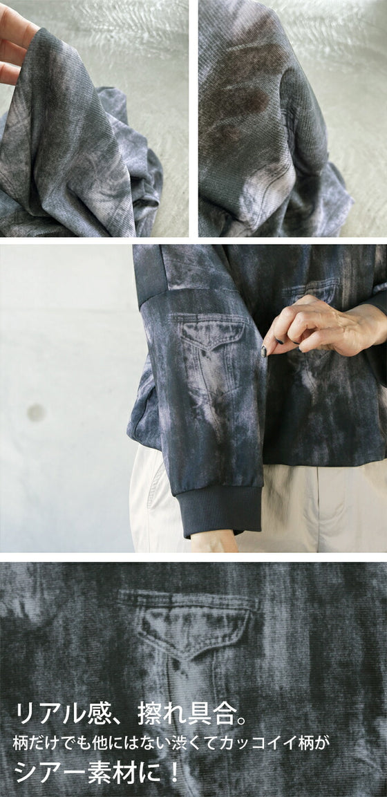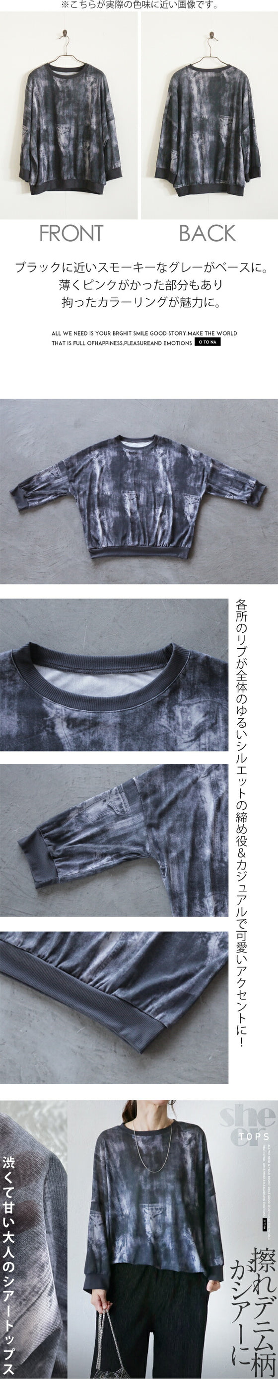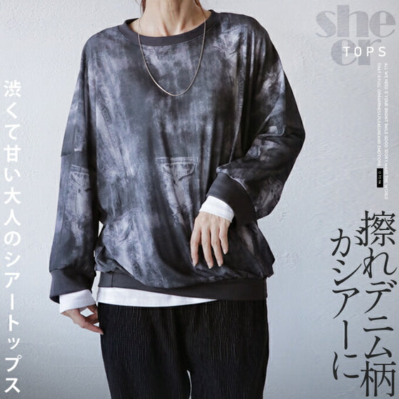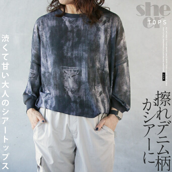 擦れデニム柄がシアーに 渋くて甘い大人のシアートップス