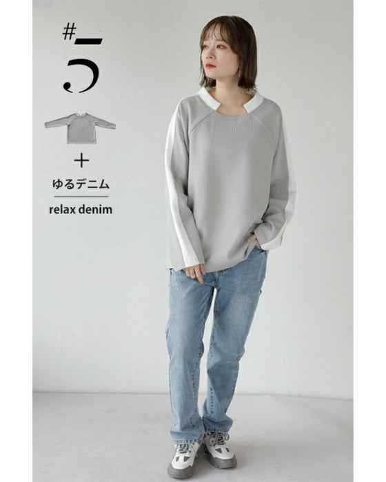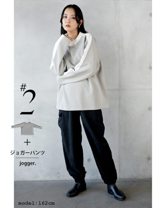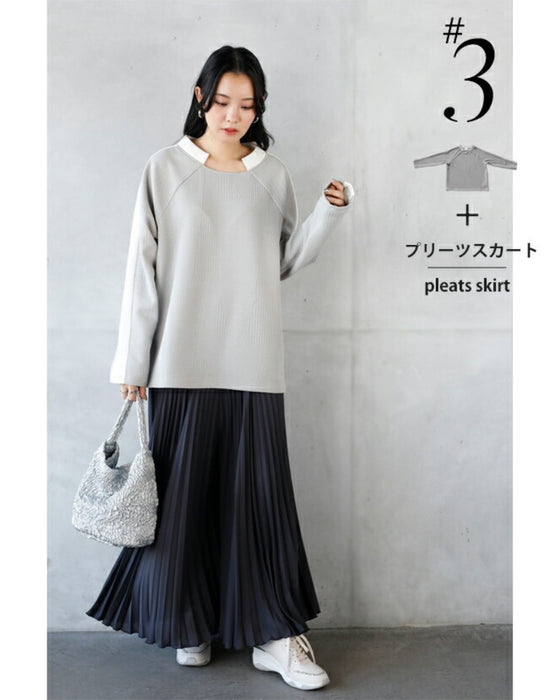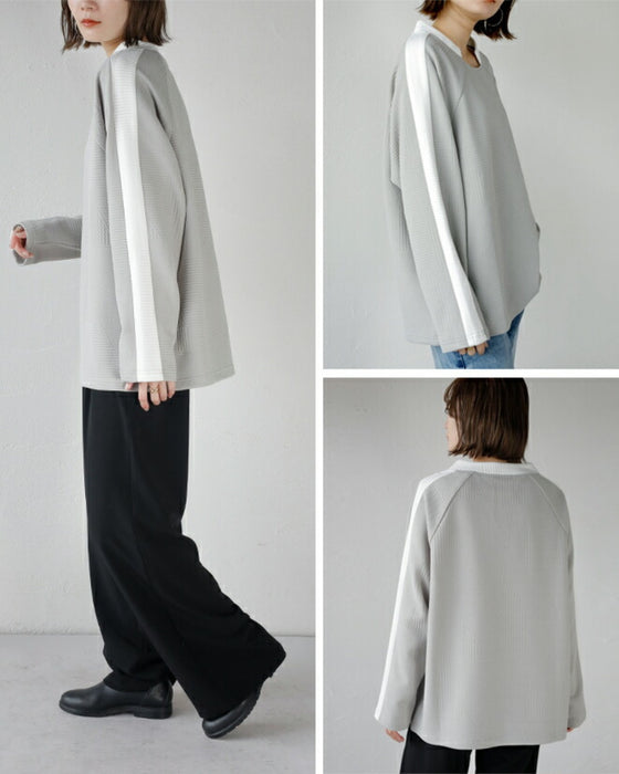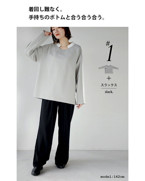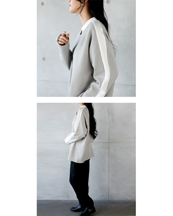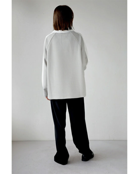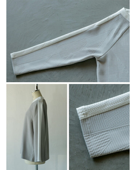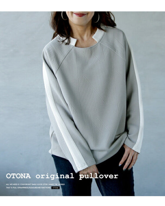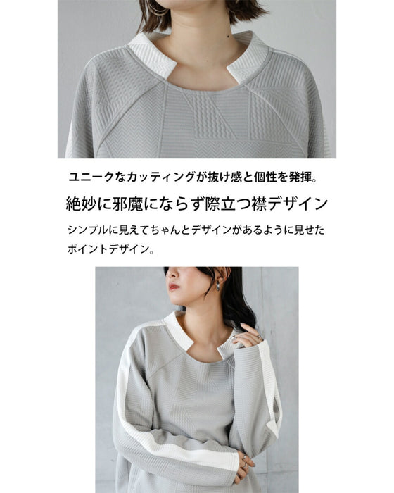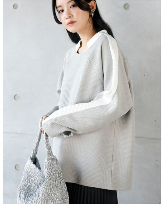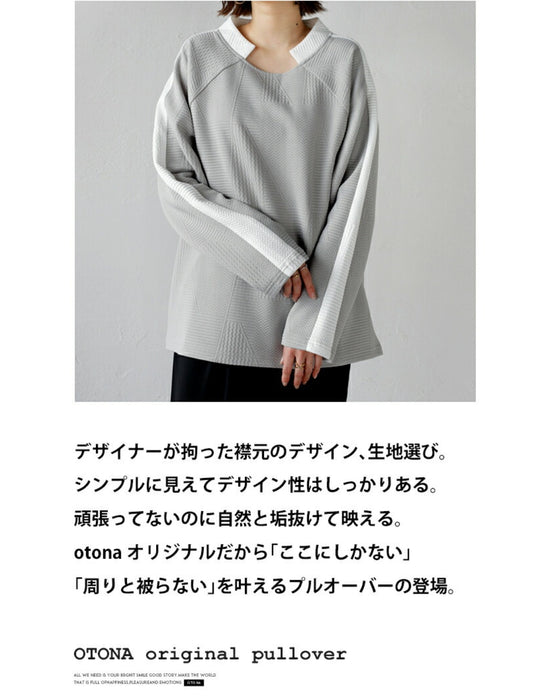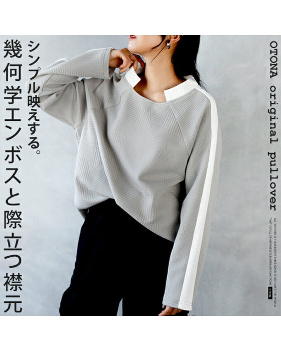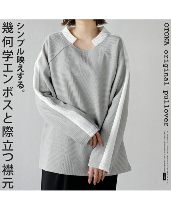 シンプル映えする 幾何学エンボスと際立つ襟元プルオーバー