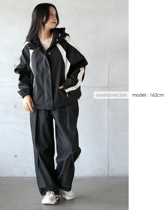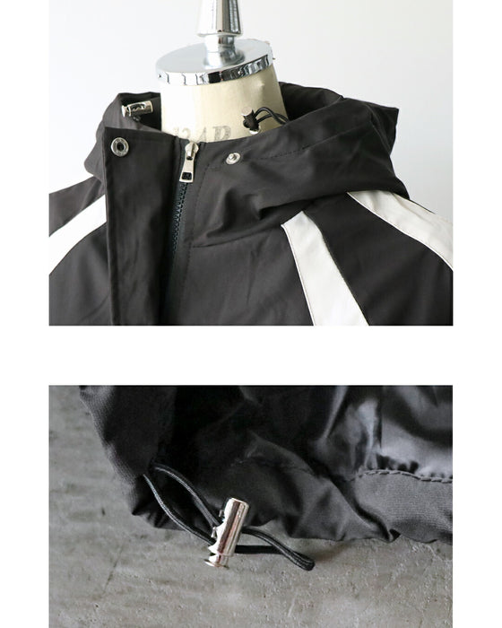 袖口にゴム入りでメリハリがあり、裾とフードにドローコード付きでシルエットを変化させられます。
