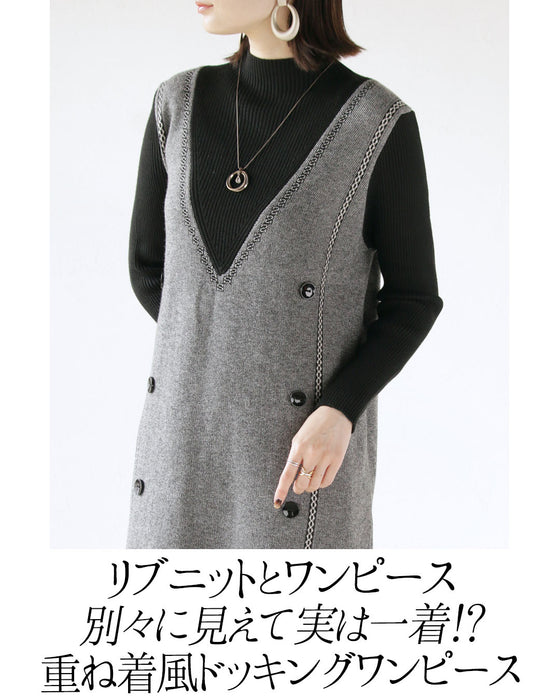 レイヤード風 一枚で重ね着風ドッキングワンピース