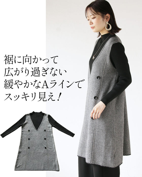 ■一枚でニットとワンピースがくっついているドッキングデザイン。サッと一枚着るだけなので着膨れ感なくスッキリと重ね着風のオシャレが楽しめます。技いらずでサマになる レイヤード風チュニックワンピース。