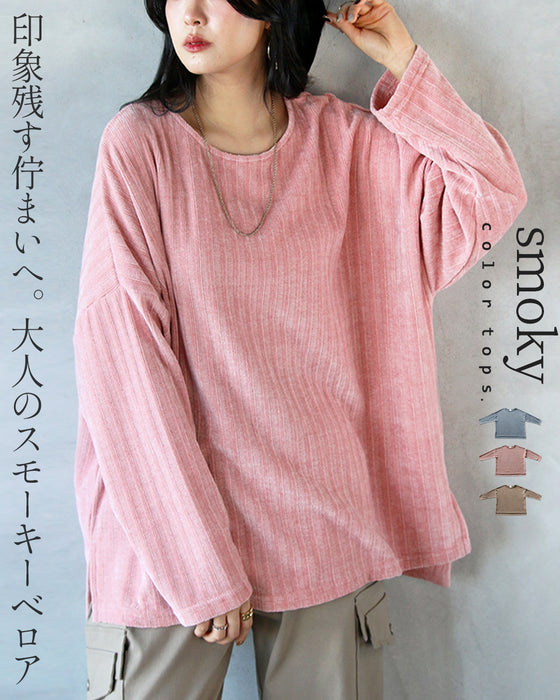 ベロア独特の微起毛感とスモーキーな色味が絶妙にマッチし、