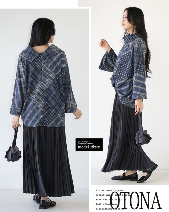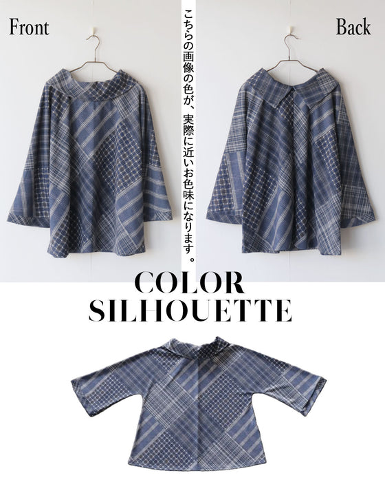 ■パッチワーク風のMIXチェック柄とフレアな袖で大人可愛い一枚に。