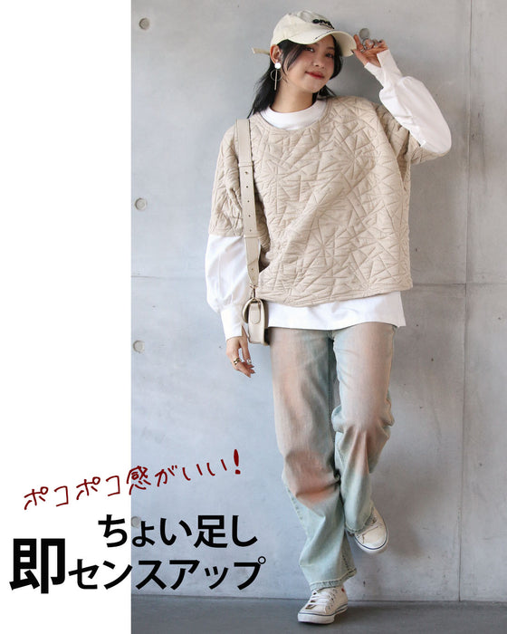 ■ふかっと柔らかで肉厚な立体感のあるキルティング素材。軽くて暖かいのでストレスなくレイヤードコーデが楽しめます。