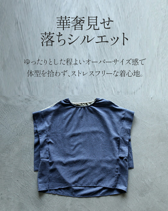 サイドの袖の変形デザインが動きを生み出し、こなれた表情に。