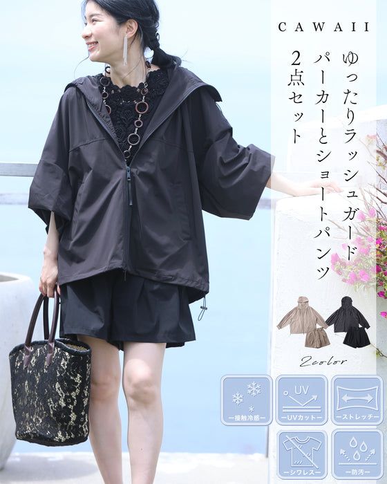 ゆったりラッシュガードパーカーとショートパンツ2点セット【set】