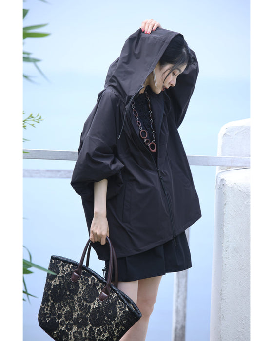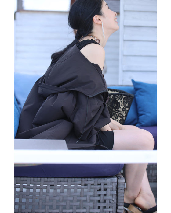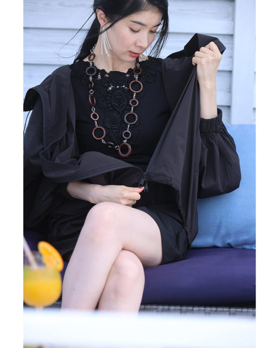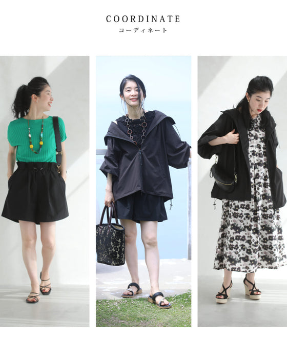 軽やかなナイロン系素材で、春夏のお出かけやリゾート、アクティブなシーンにぴったりな一着です。風を通しにくく、軽量でさらっと羽織れるので春夏のお出かけにぴったり。紫外線対策や冷房除けにも便利です。