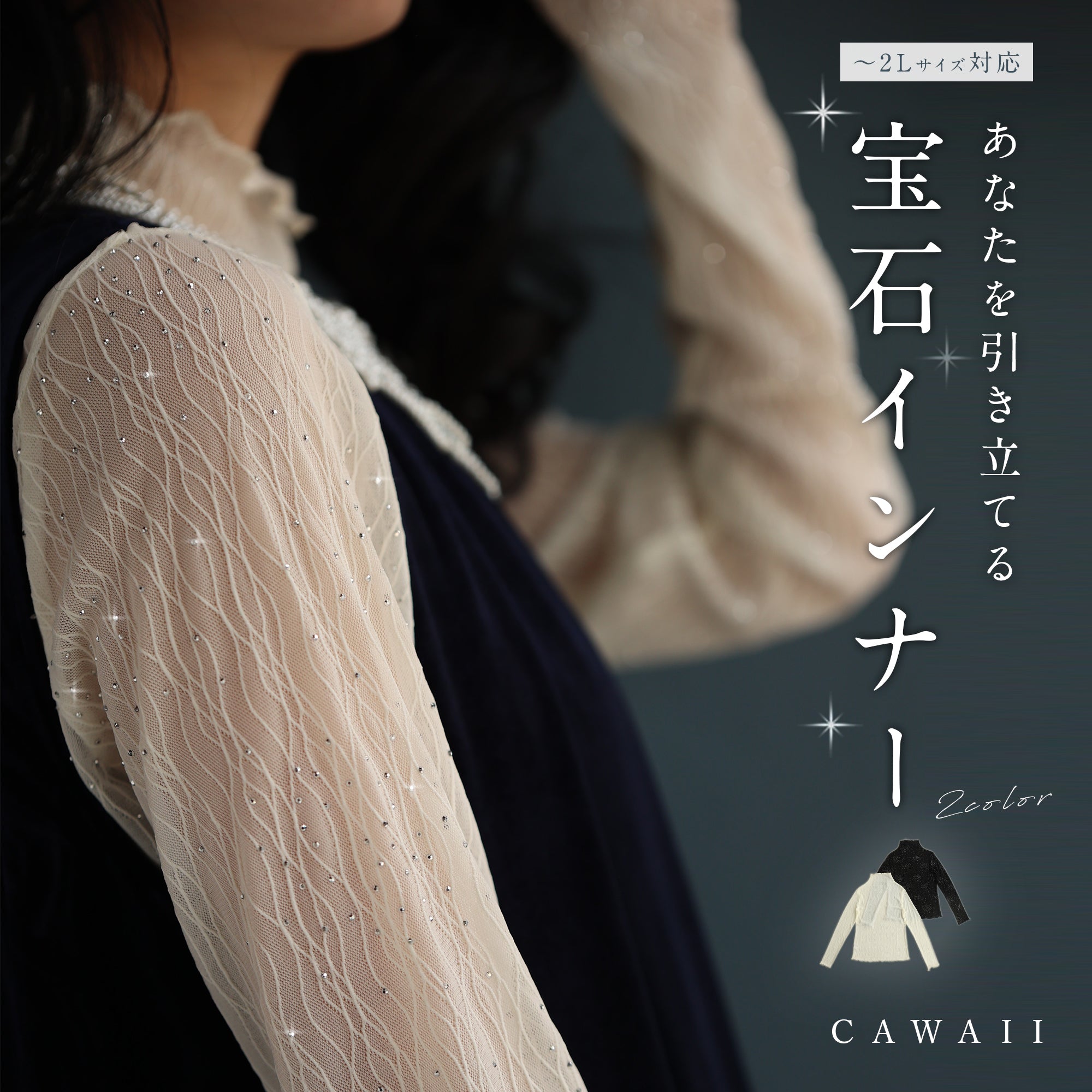 CAWAII (Available in sizes M, L, 2L and 3L) Pearl line dress that doesn't show off your body lines ¥12,100 SALE