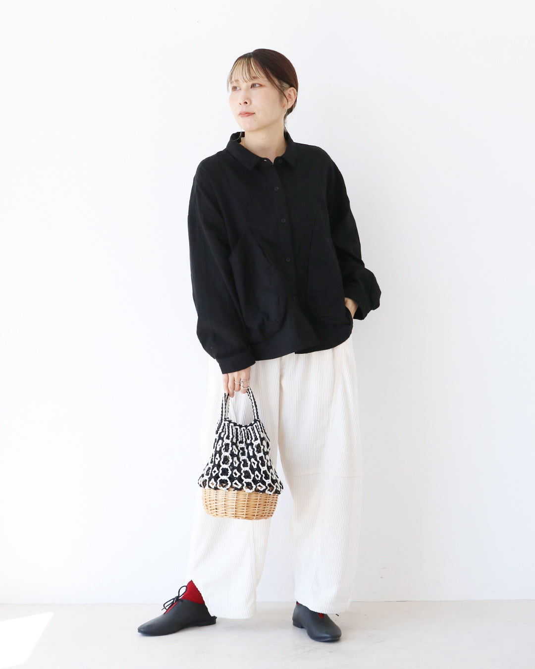 ブラック×アイボリーの組み合わせで、抜け感のあるナチュラルコーデ。