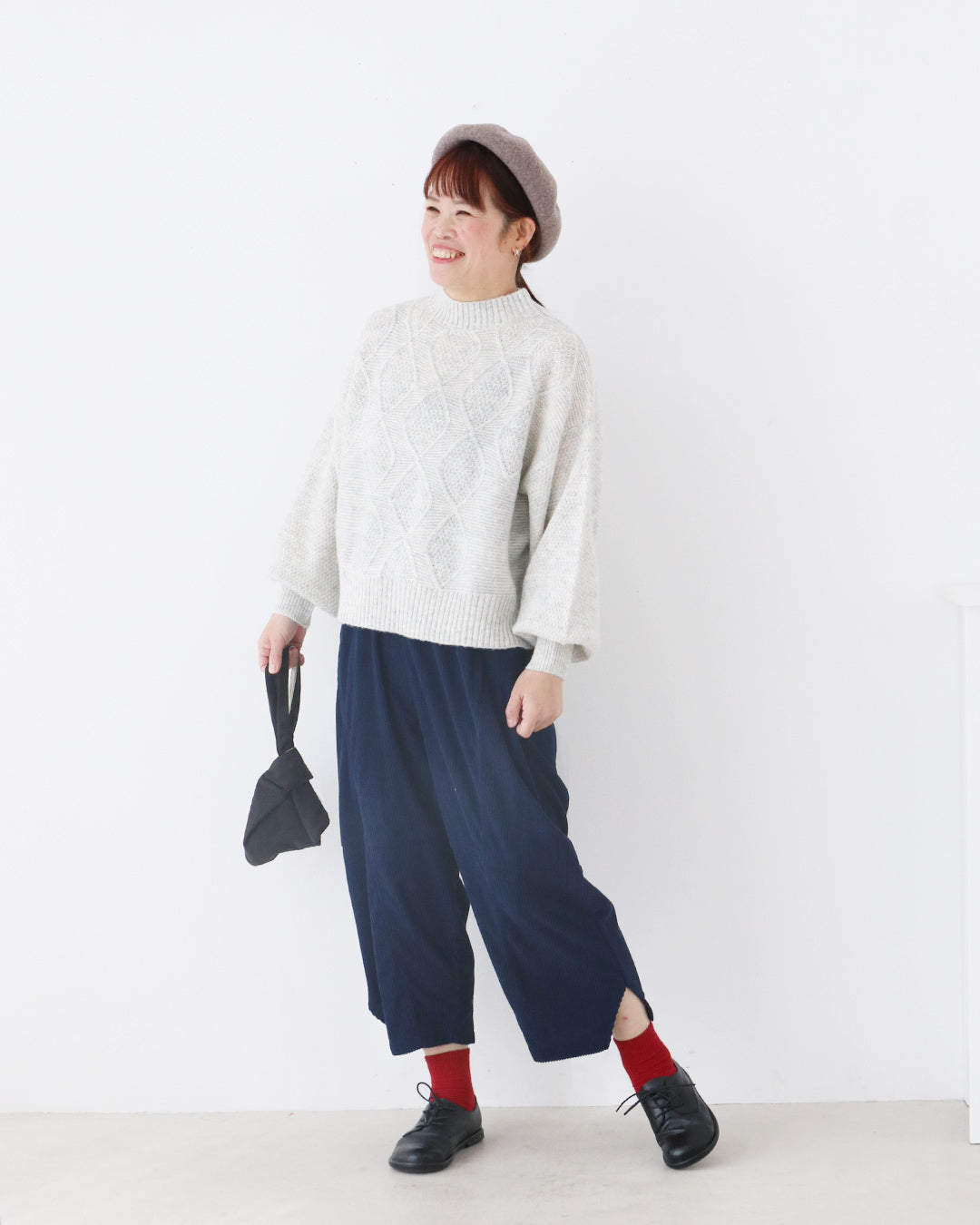 ニットの立体感のおかげで華やかな印象に仕上がります。