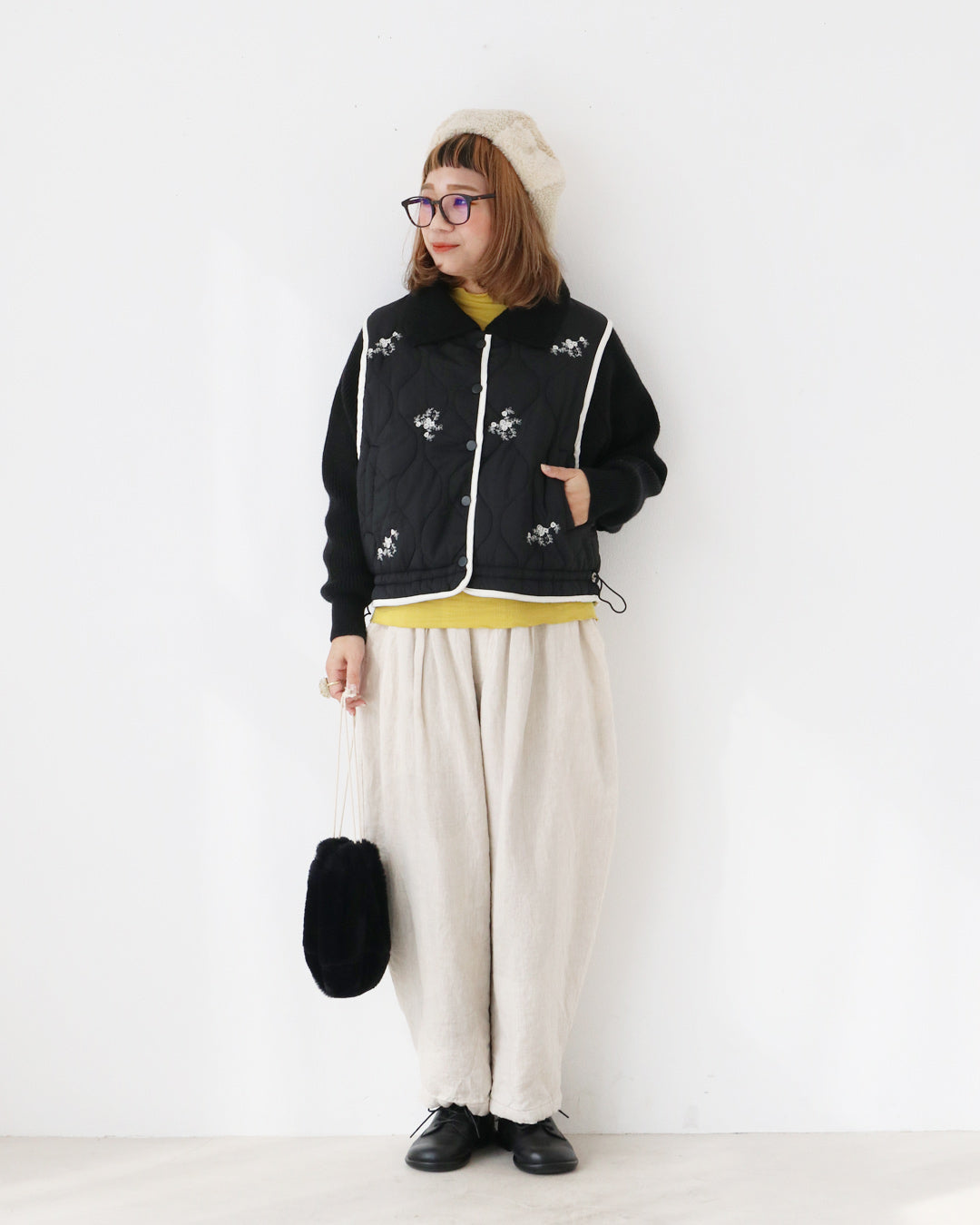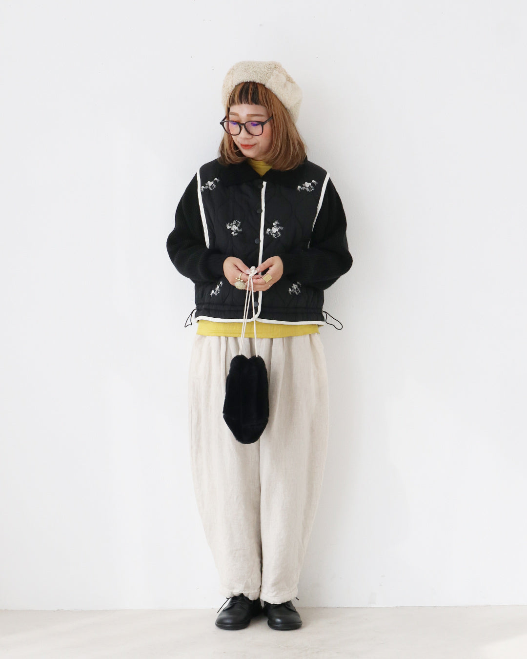 まるで重ね着をしているようなアウターはシンプルなトップスに羽織るだけで、一気に華やかさをプラスしてくれます。