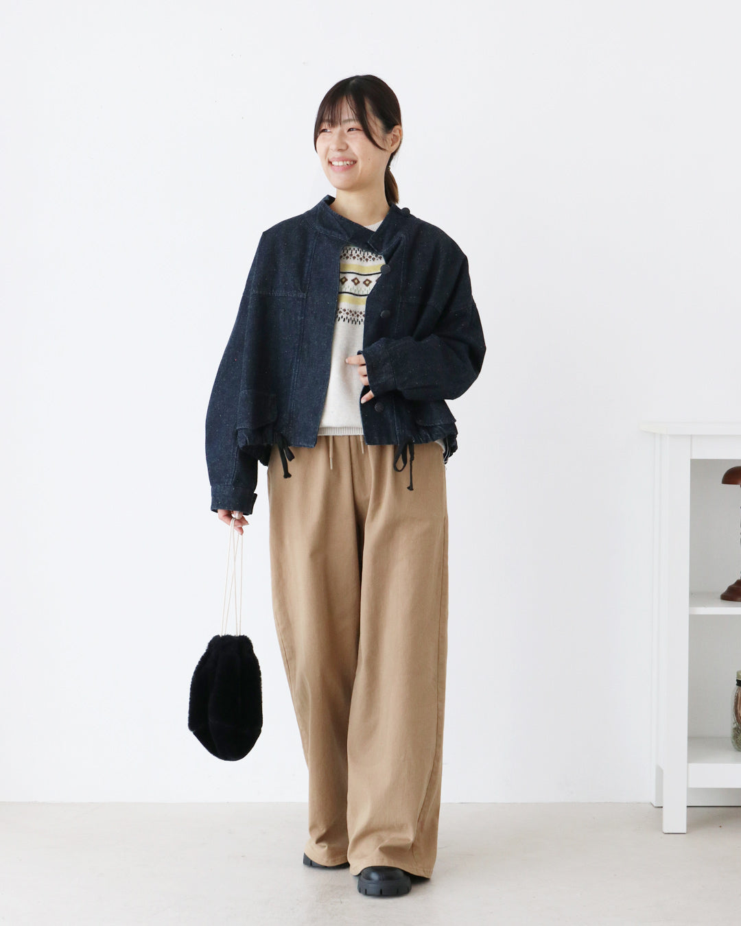 インナーには、ノルディック柄のデザインニットをちら見せして、遊び心をプラスしました。