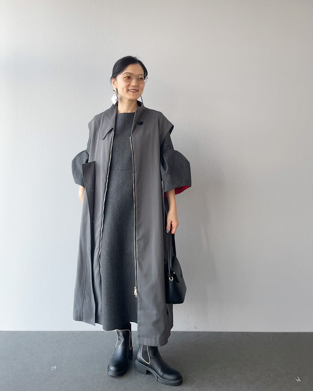 ジレを重ねれば、ほどよい抜け感が出てデイリーコーデにも馴染む、一着で幅広く楽しめるワンピースコーデです