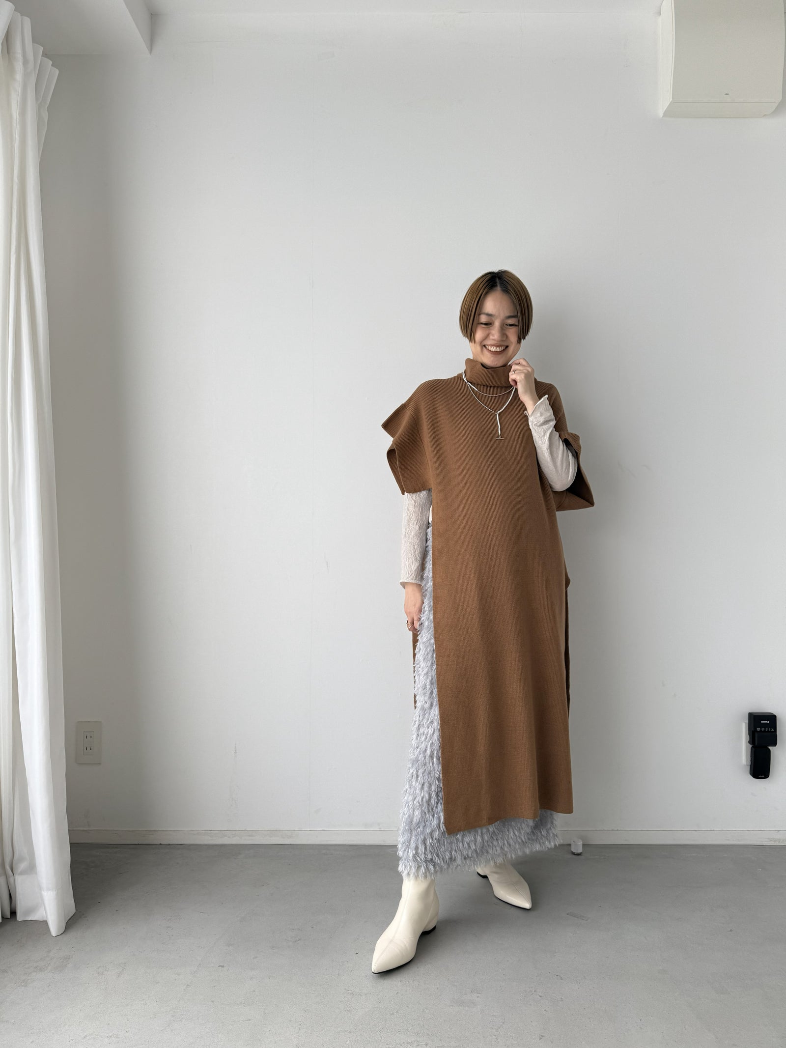 ほんのり輝くラメ入りのふわふわタイトスカートにポンチョ型ニットトップスを合わせた、大人のおめかしコーデ「グレー×キャメル」の色合わせは最高に上品でレディー!で気分の上がるコーディネートです♡トップスは何と2WAYなので同じコーデでも雰囲気がガラっと変わります!全く同じアイテムで2パターン写真を撮ったので比べてみて下さいね♪