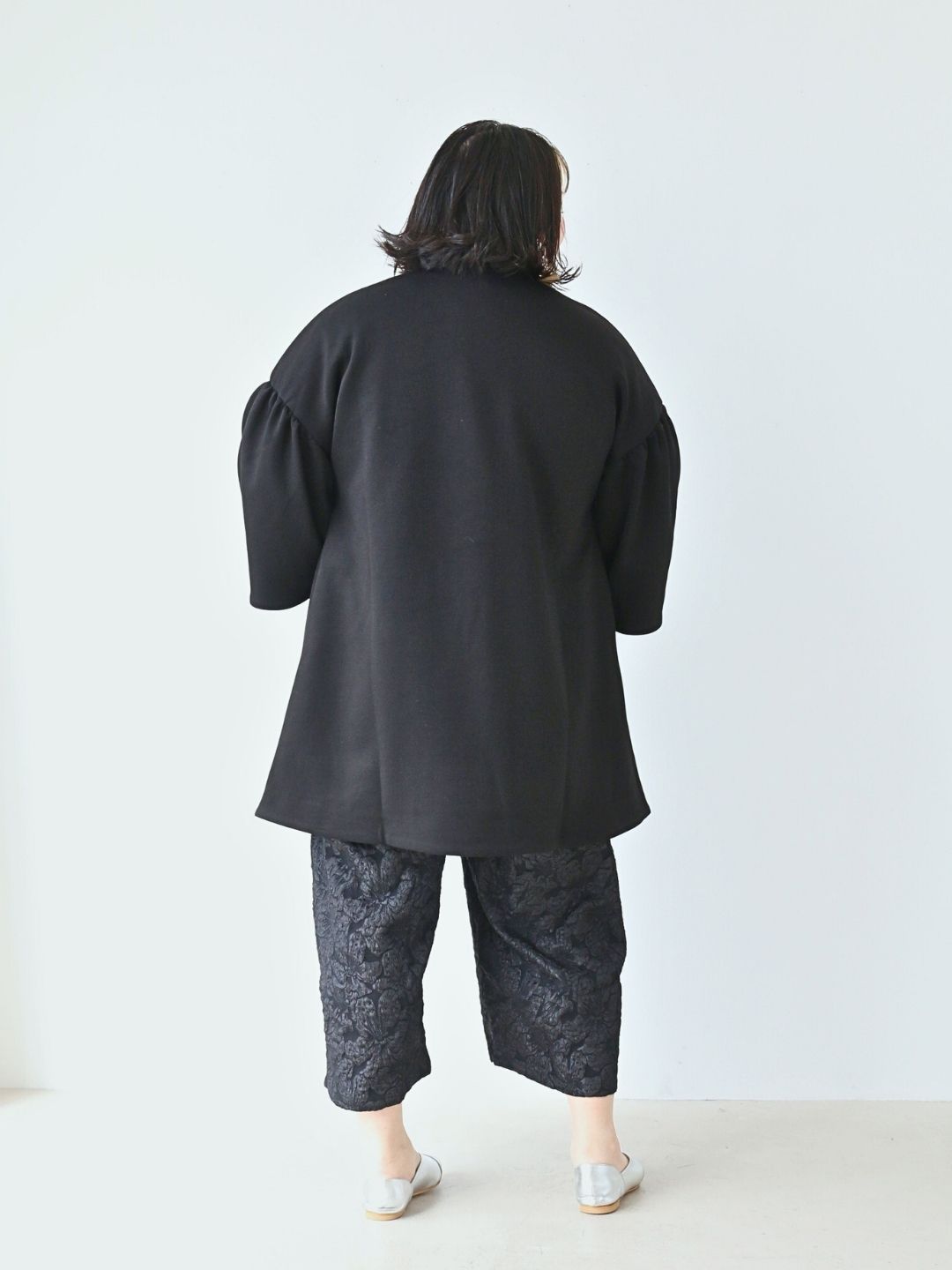 ジャガードパンツを合わせて、さりげなく華やかさもプラスしています。