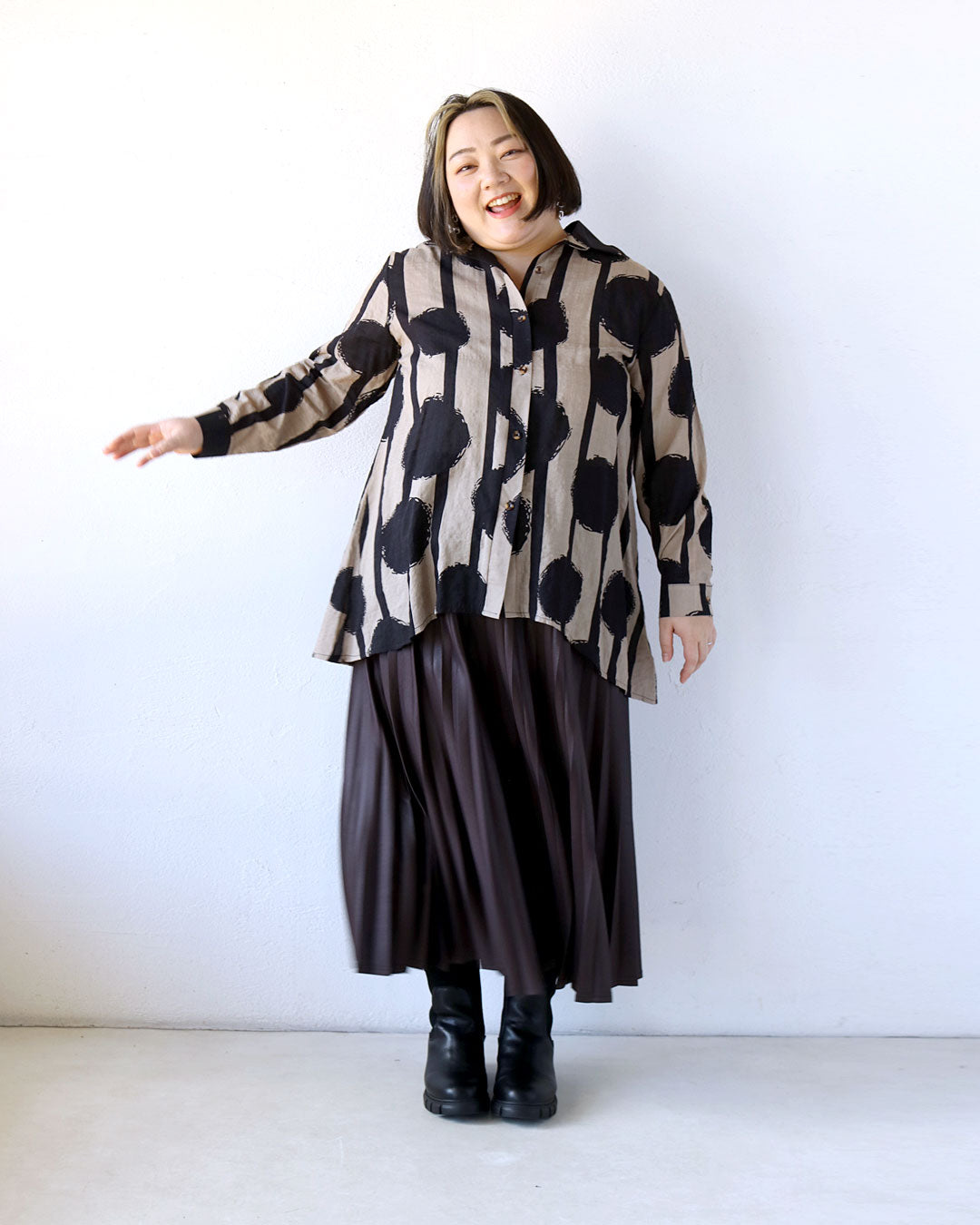 柄シャツで視線を上に、華やかさもプラス◎個性的で大人っぽいコーデ♪