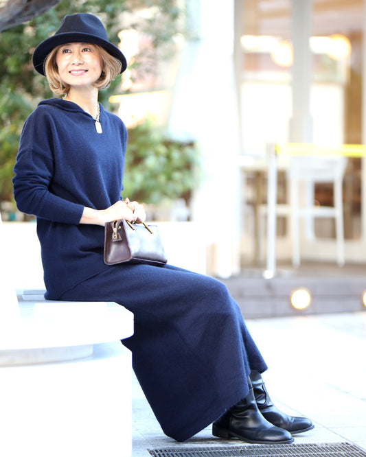 このスカート、ウールが入っているのと程よく厚みがあり、風を通しにくいので見た目以上にとても暖かいんです。