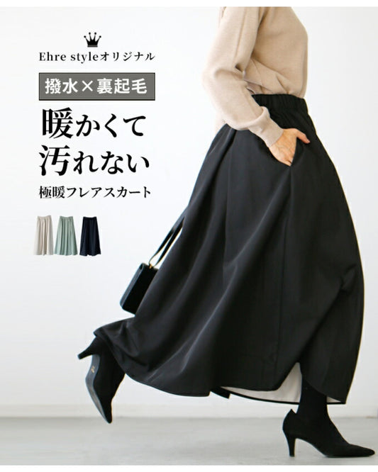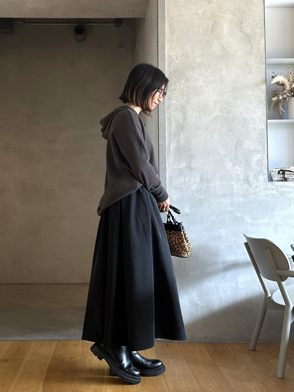 ニットパーカーはウール混で薄手なのにしっかり暖かい!合わせたスカートも裏起毛でとても暖かく、寒がりな私でも秋冬に安心して出かけられる♪