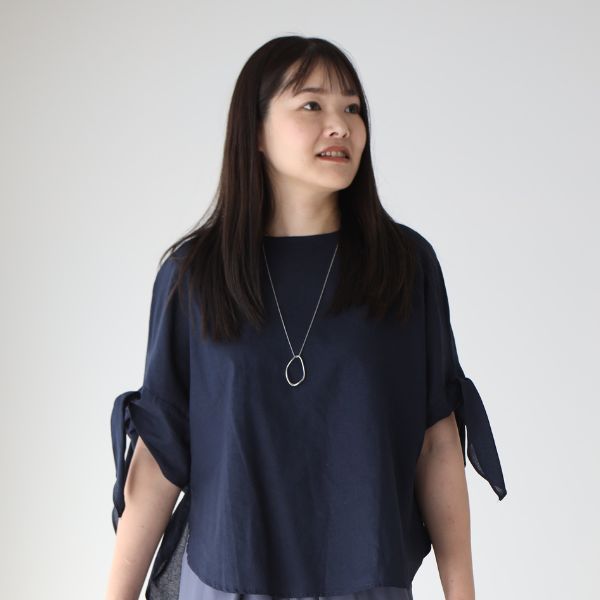透け感ニットとシフォンパンツは、ソフトで女性らしいアイテム◎