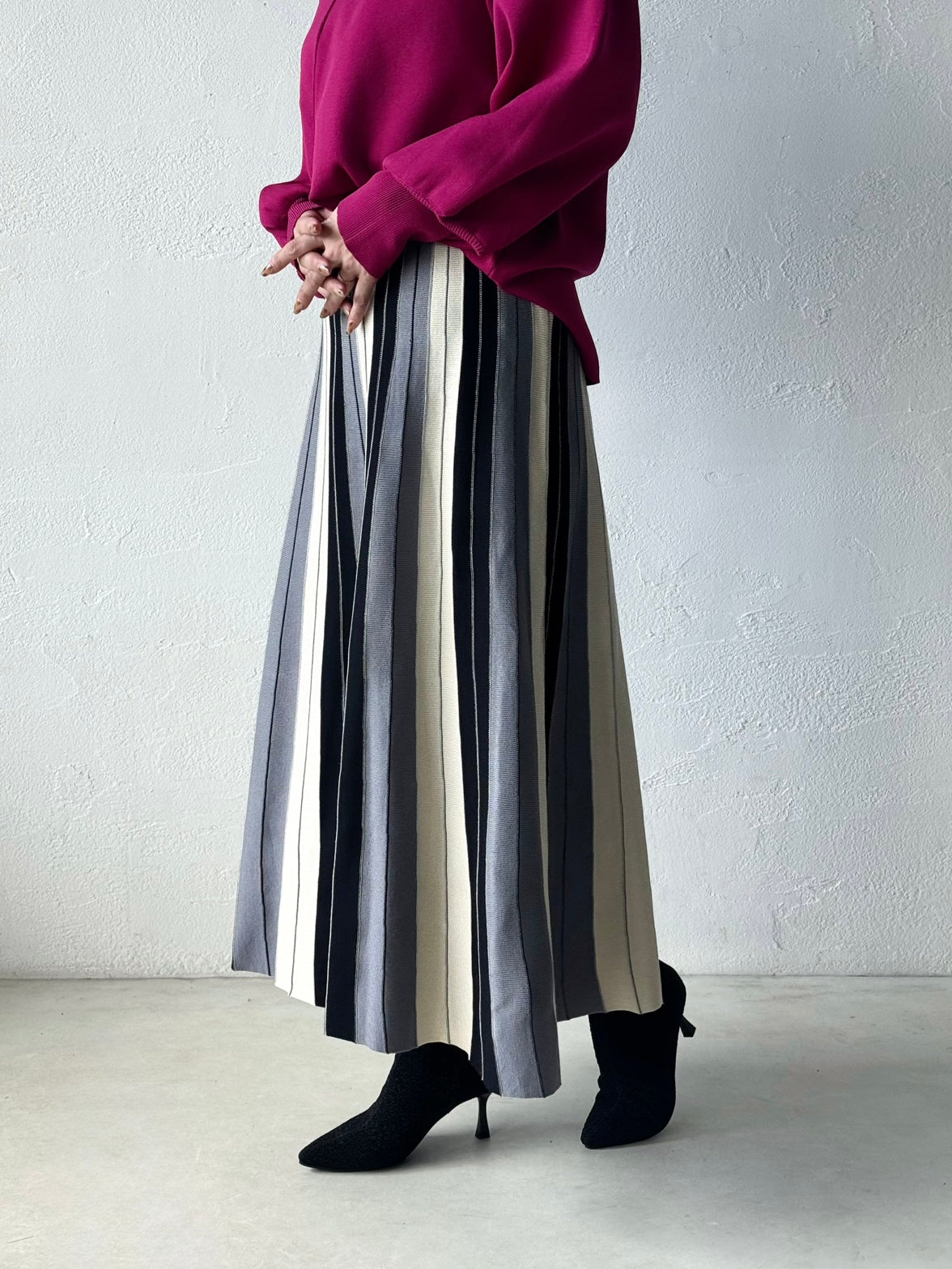 ストライプの縦ラインスカートで自然にスタイルアップ✨