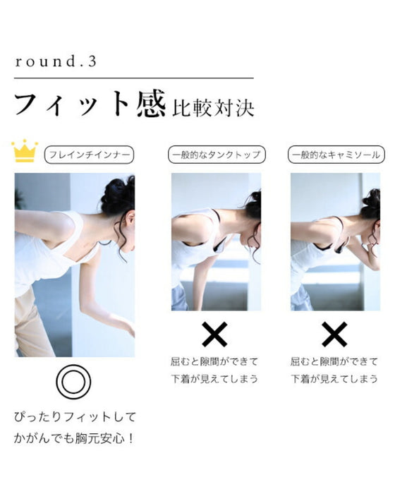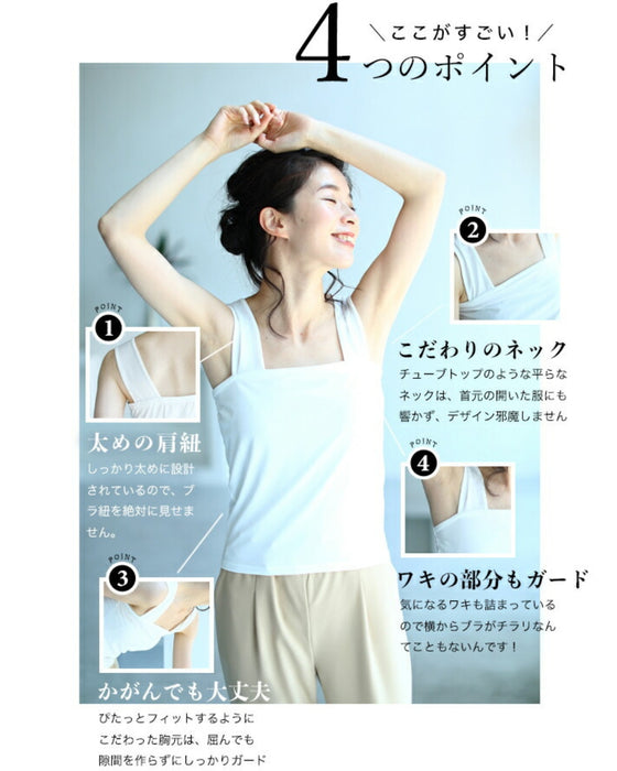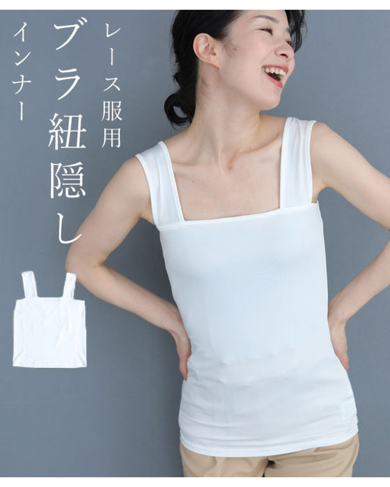 This innerwear will solve that problem. The shoulder straps are designed to be thick, so they will hide the strings of your underwear. In addition, the neck is flat like a tube top, so you don't have to worry about your innerwear sticking out from your neck, and it won't get in the way of your clothes.