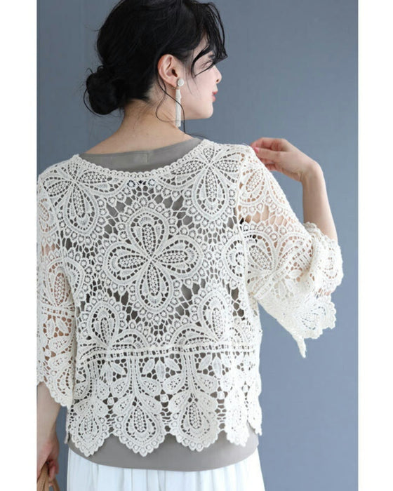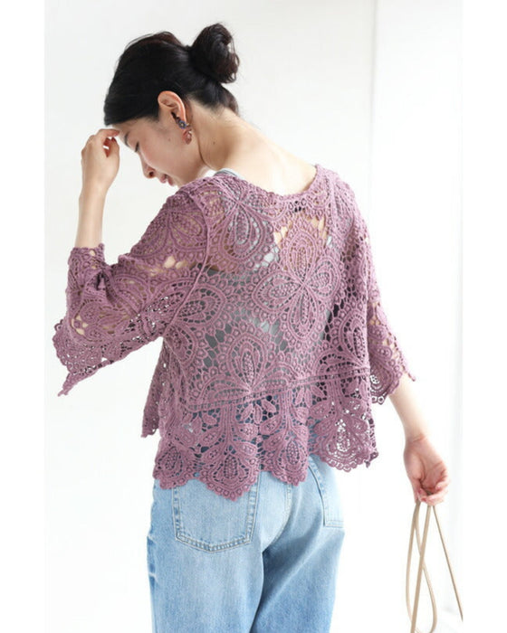 The beautiful openwork knit will elevate your summer outfit. Another interesting feature is that the mood changes depending on the color of the inner layer.