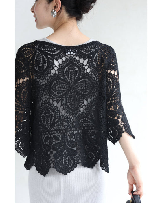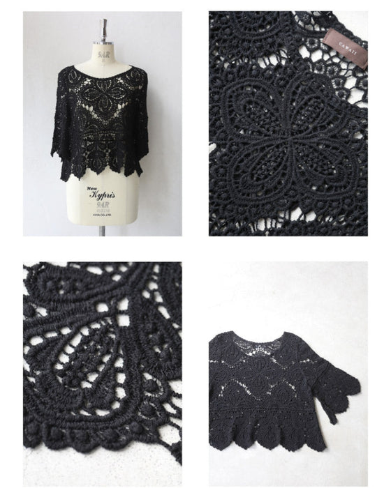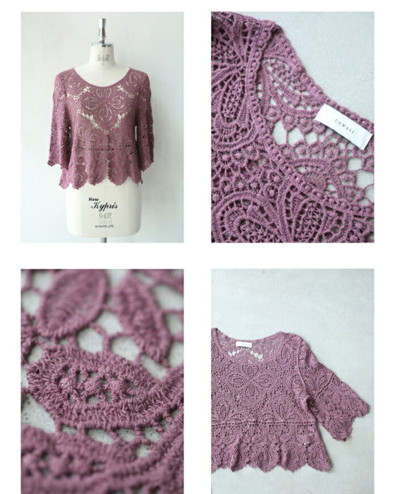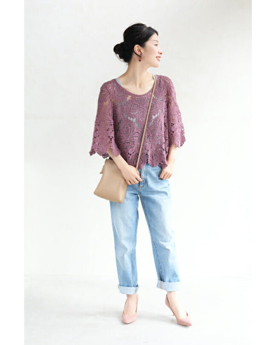 It's great to have a crocheted item that makes you look stylish just by wearing it. The elegant cut of the hem and cuffs makes it perfect for mature women.