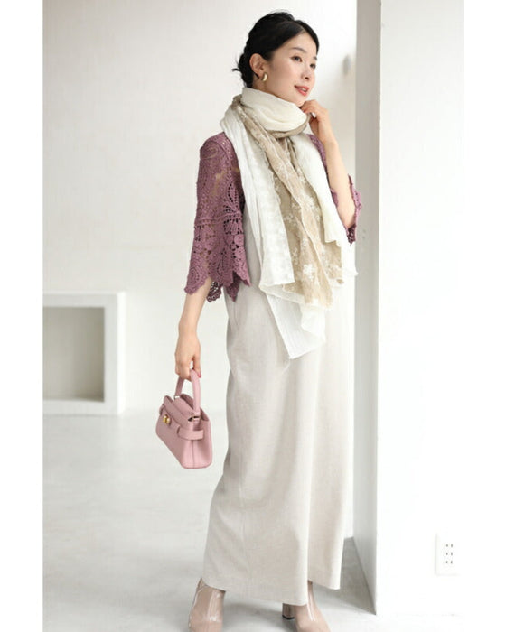 ■ It goes well with long skirts and wide pants. It is also recommended to wear it with a sleeveless dress, which is difficult to wear on its own.
