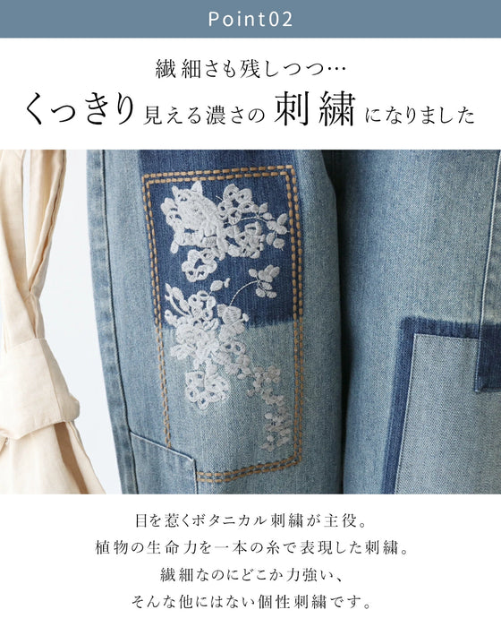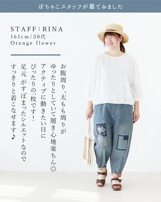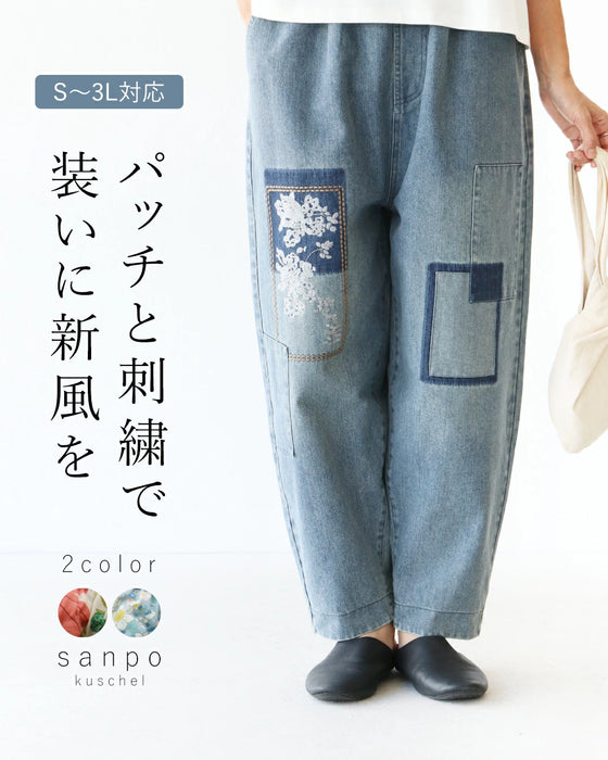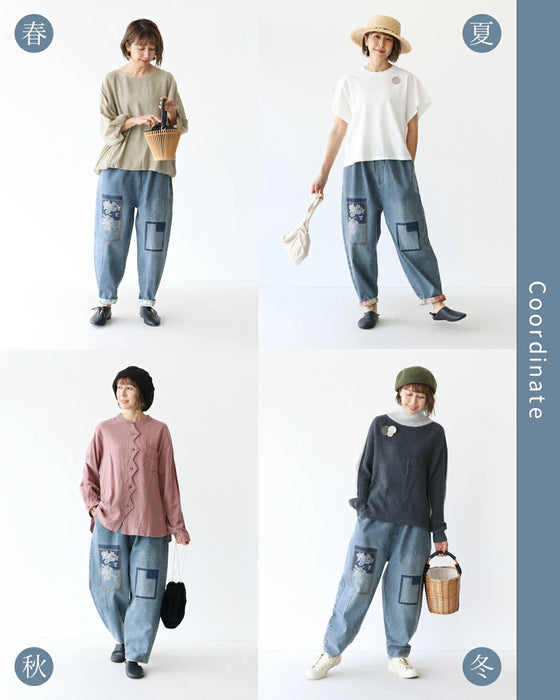 <2-color hem pattern> Patches and embroidery add a fresh edge to your everyday look.