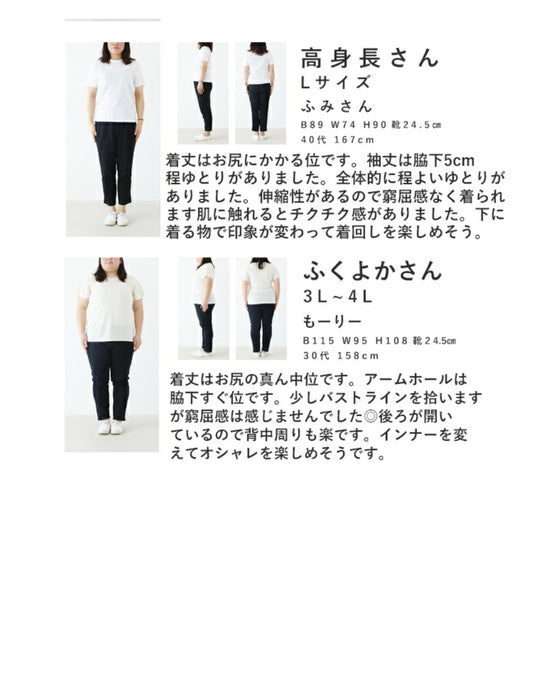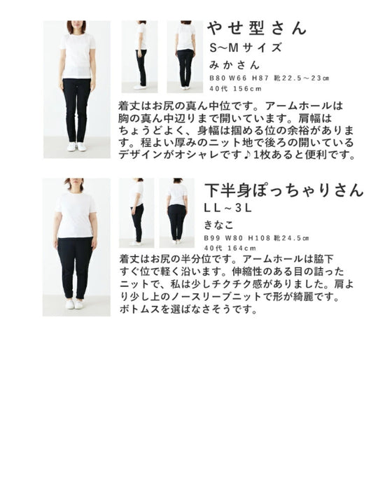 The crew neck is not too open, so it can be layered with a wide range of items, from cut-and-sew tops to blouses.