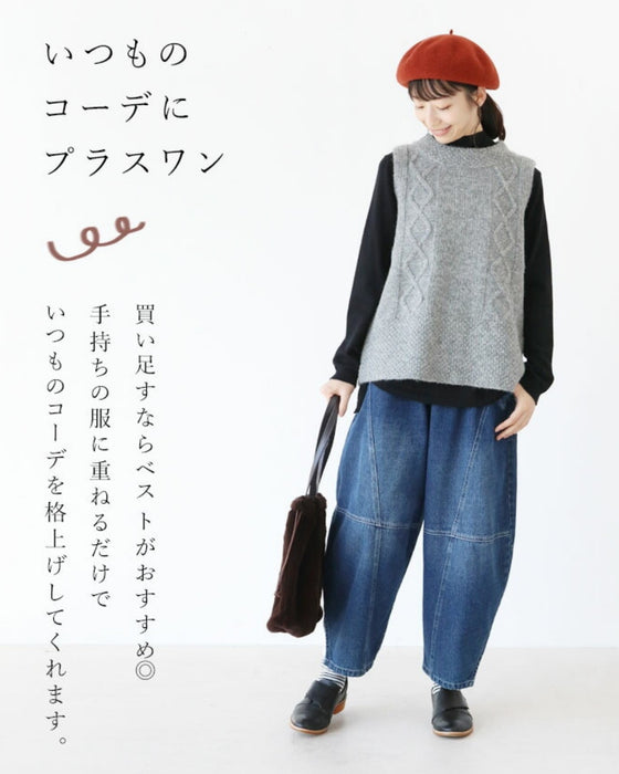 The cute knit pattern on the chest area is warm and cozy, and the three-dimensional cable knit gives it a somewhat classic feel.