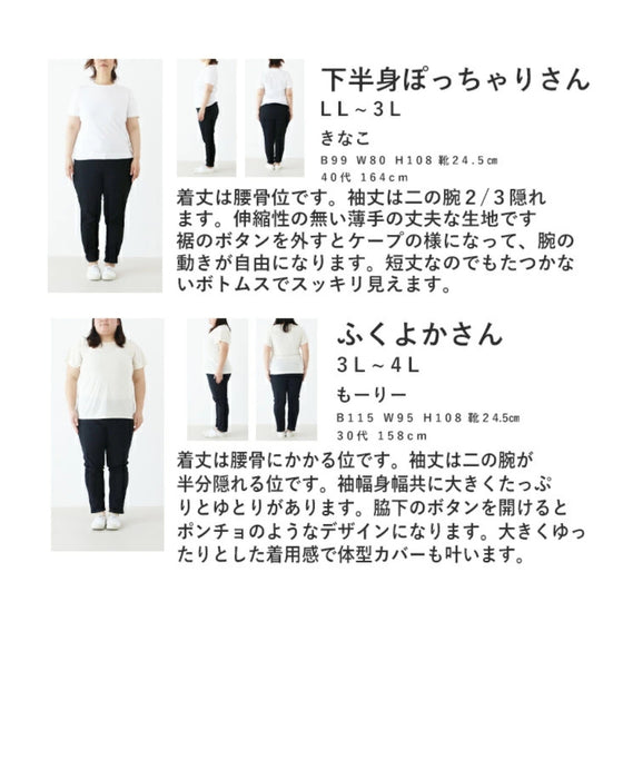 When you open the buttons under the arms, it becomes like a poncho. It is large and loose, and covers your body shape.