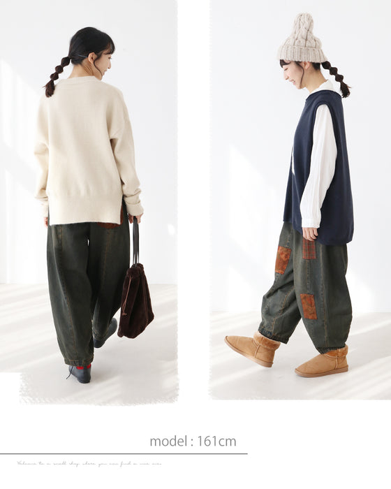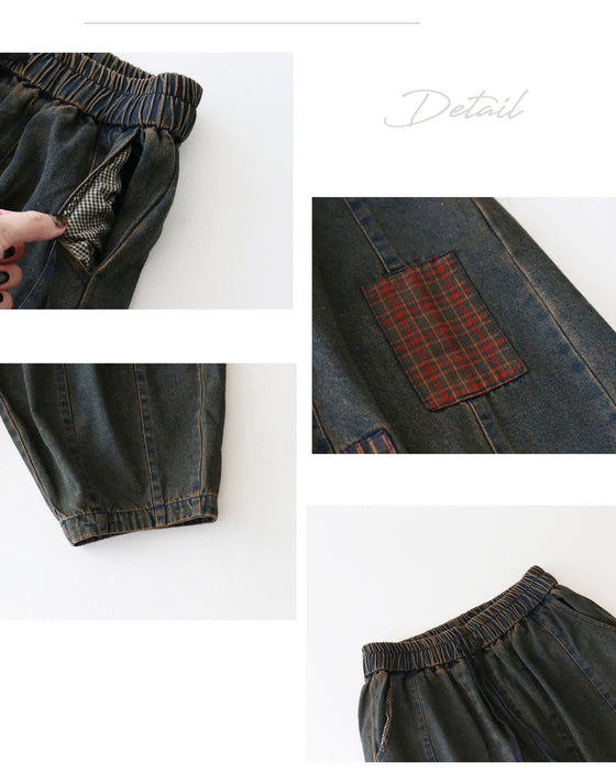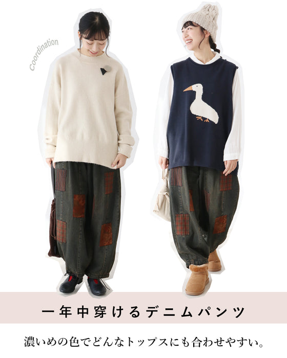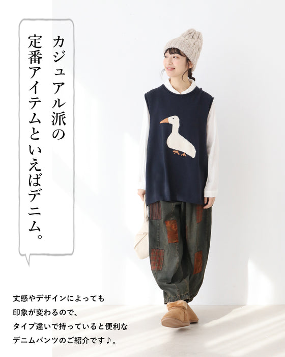 These denim pants can be worn all year round and their dark color makes them easy to match with any top.