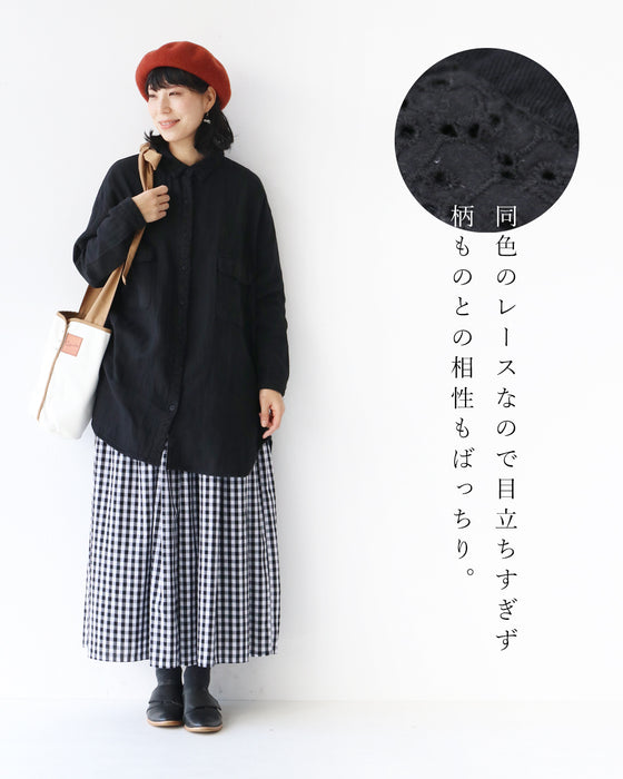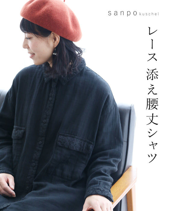 レース添え腰丈シャツトップス